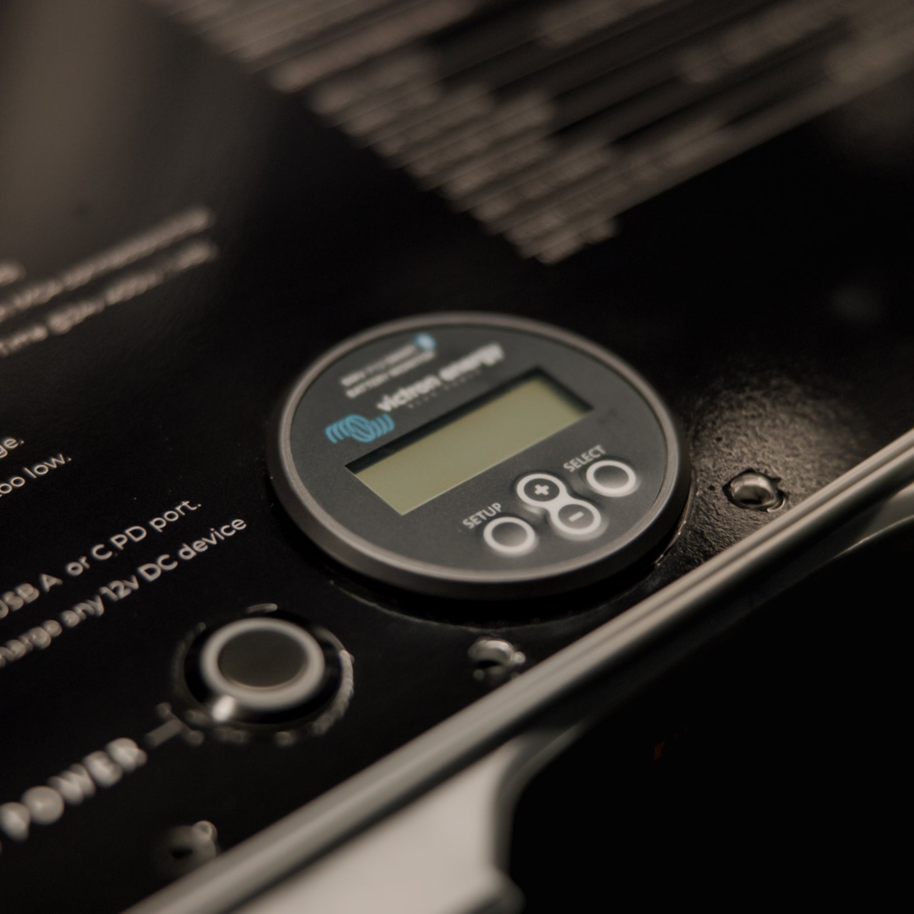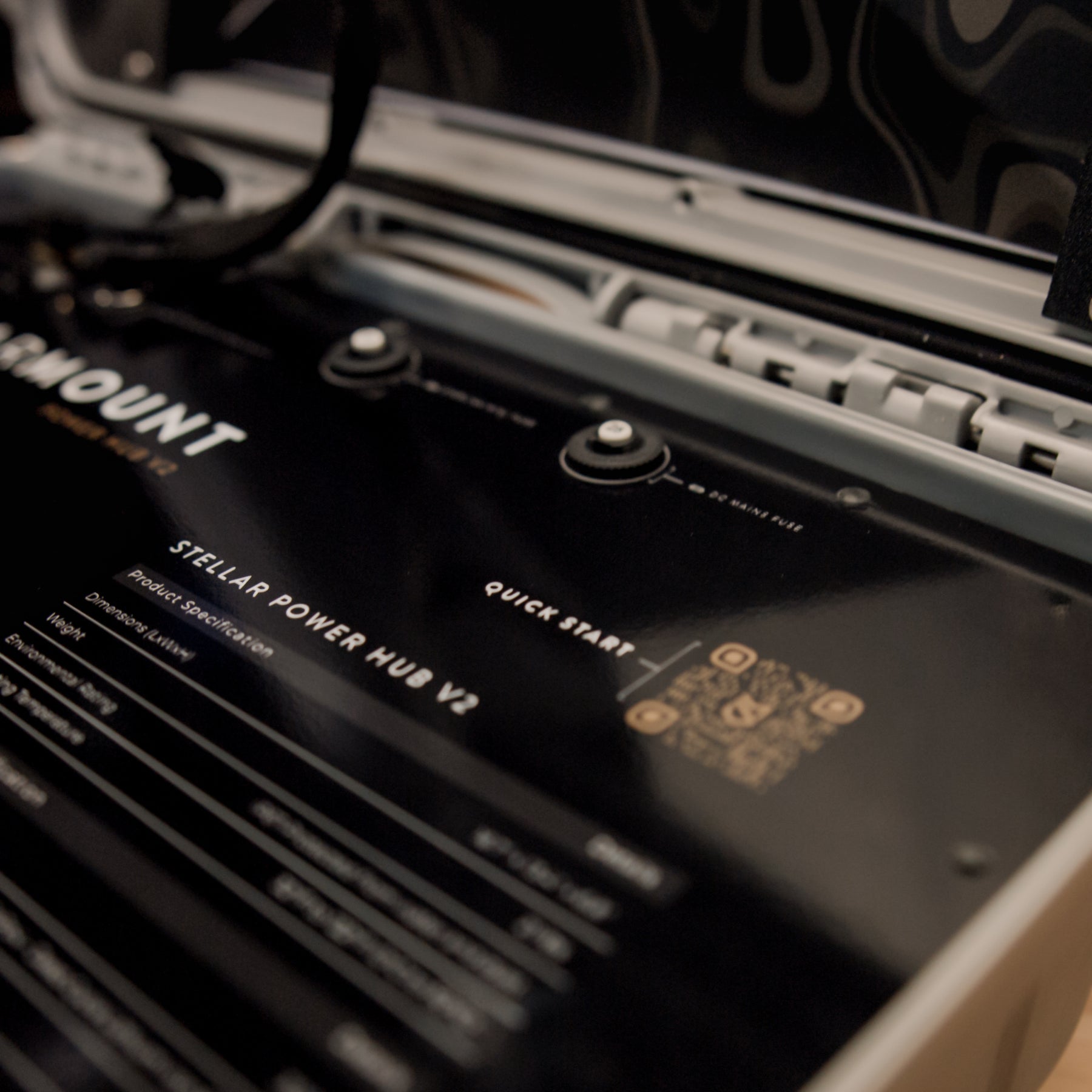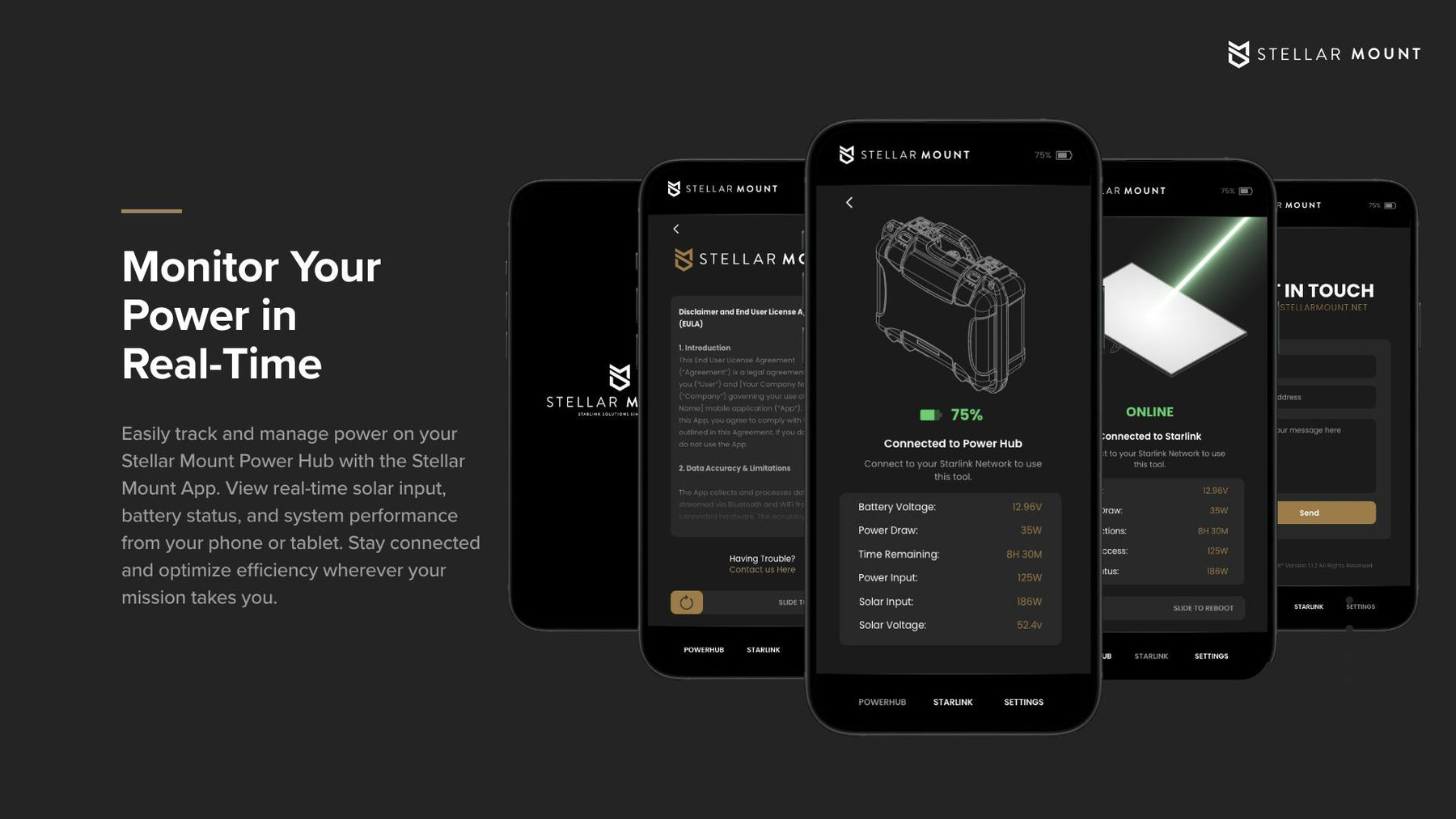 Includes locking braided cables, dual resettable fuses, and Bluetooth monitoring via the Stellar Mount App for real-time performance tracking.