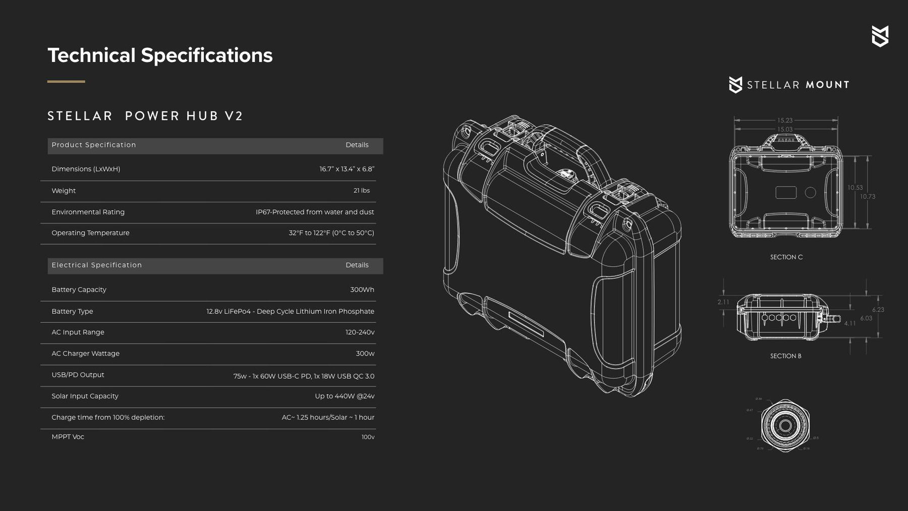 The Stellar Power Hub V2 delivers reliable, high-output power for Starlink™ systems and critical field gear. Compact, fast-charging, and fully waterproof, it’s built for law enforcement, military, emergency response, and off-grid professionals.